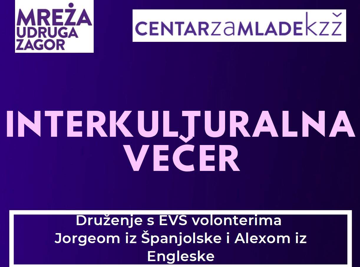 Mreža udruga Zagor poziva Vas na Interkulturalnu večer na kojoj ćete imati priliku družiti se sa EVS volonterima, Jorgeom iz Španjolske I Alexom iz Engleske.