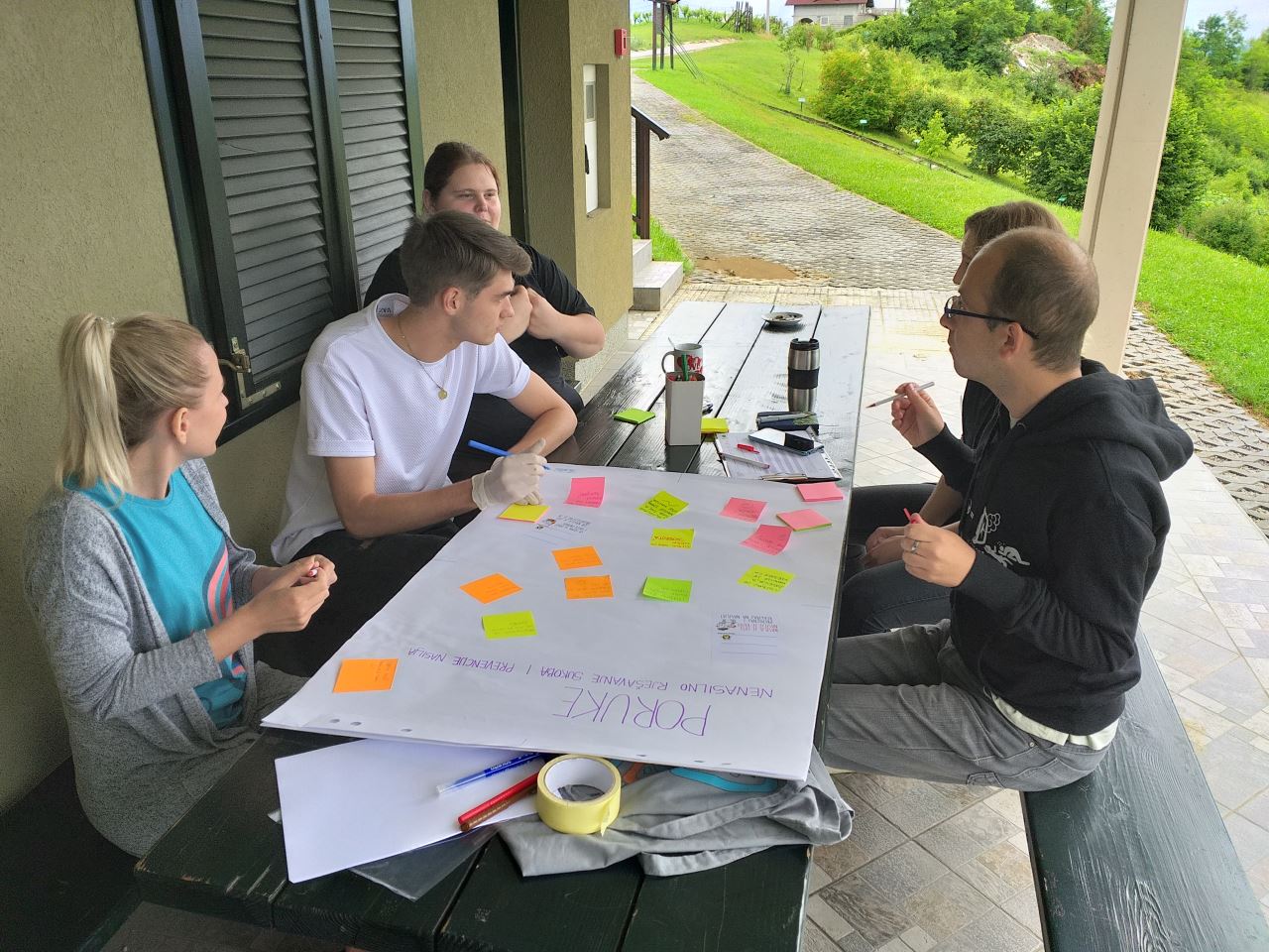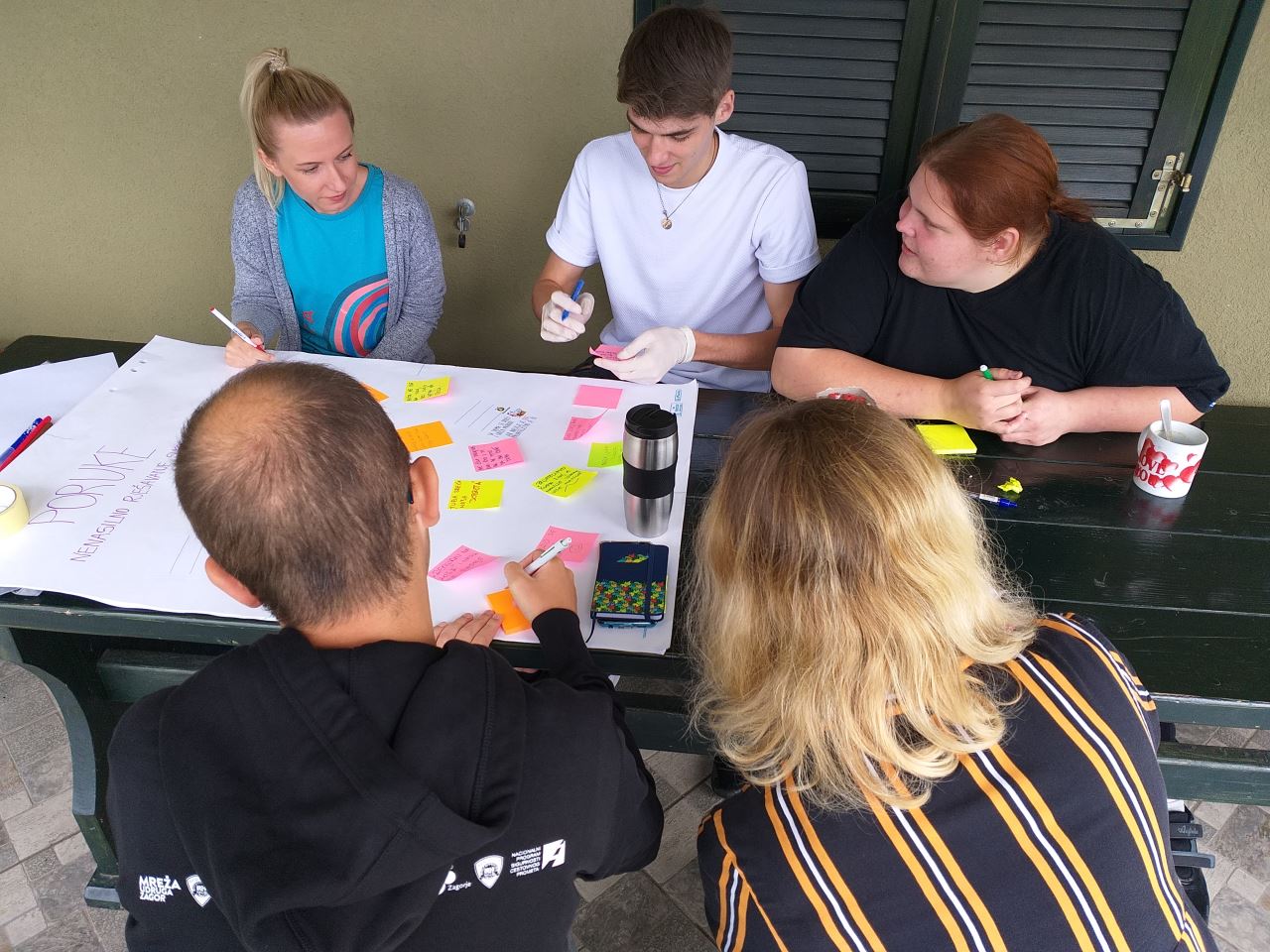 Prošlog tjedna zajedno smo s volonterima/kama proveli radionicu na kojoj su mladi osmišljavali poruke na temu nenasilnog rješavanja sukoba i prevencije nasilja. U okviru projekta organizirat će se niz kreativnih aktivnosti; parlaonice, radionice, izložbe, obilježit ćemo Nacionalni dan borbe protiv vršnjačkog nasilja postavljanjem info štandova u srednjim školama.