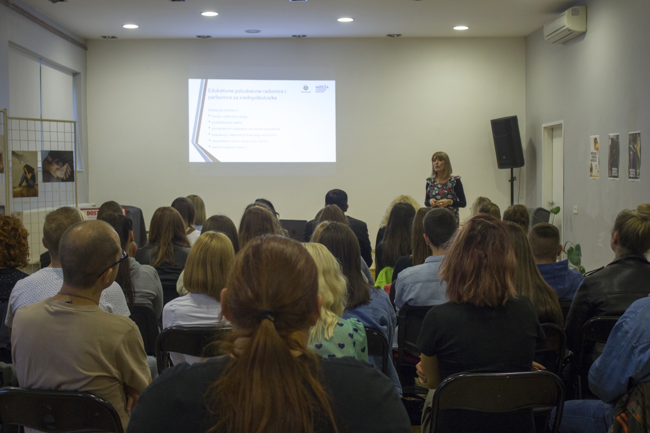 U okviru projekta provedene su edukativne radionice za mlade o nenasilnom rješavanju sukoba, parlaonica na temu „Nasilje među mladima se može iskorijeniti“, edukativne radionice za nastavnike i stručne suradnike koji rade u odgojno-obrazovnim ustanovama, kreativne radionice fotografije i manipulacija fotografijama, radionice snimanja videa i radio jingla s preventivnim porukama, izložbe kreativnih radova te obilježavanje Nacionalnog dana borbe protiv vršnjačkog nasilja, kroz koje se radilo na različitim pojavnim oblicima nasilja među mladima te osvještavanju istih.