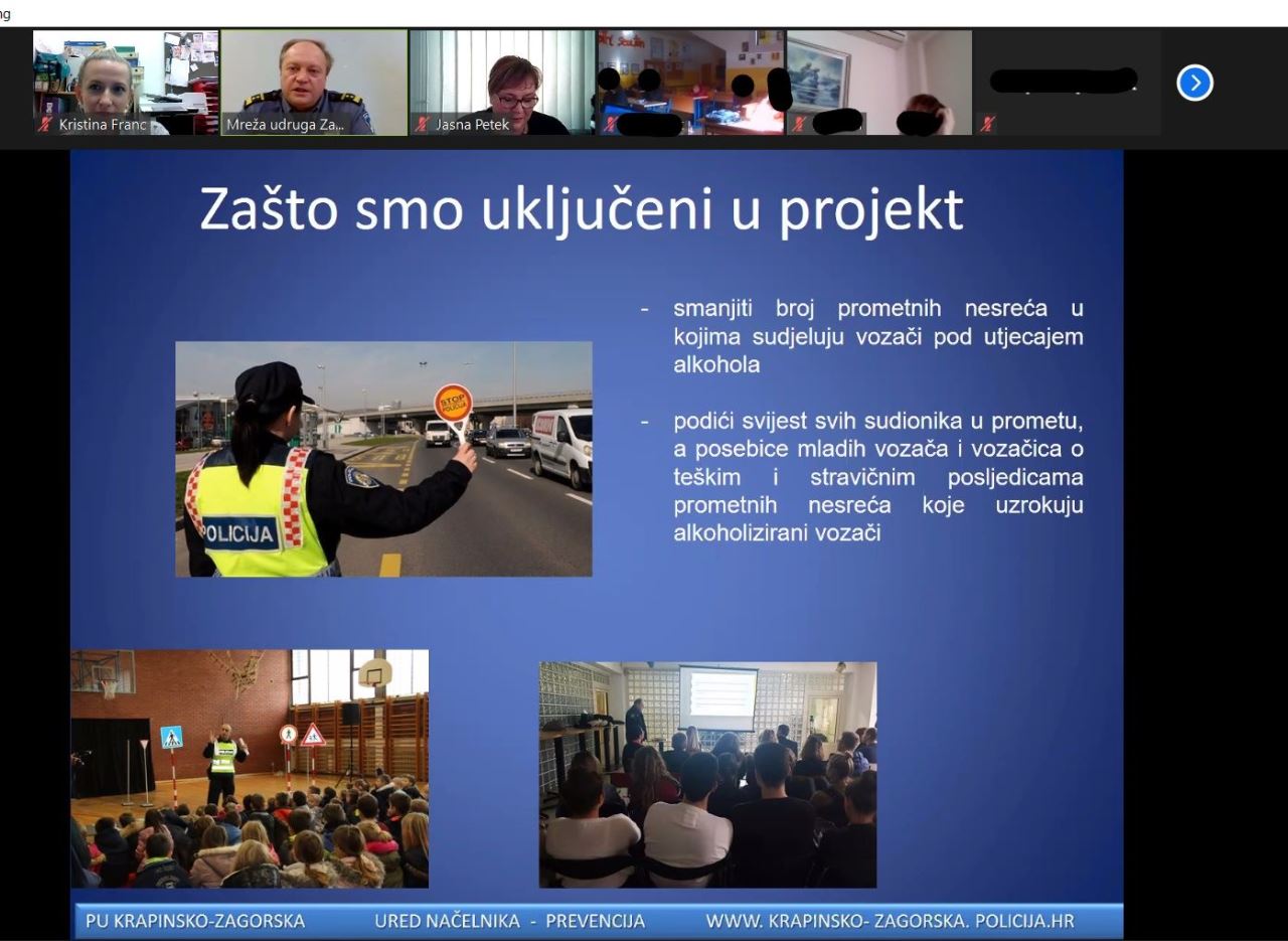 Predstavnik Policijske uprave Krapinske-zagorske, Marijan Grmovšek prezentirao je učenicima/cama podatke o mladima u prometu te štetnim posljedicama vožnje u alkoholiziranom stanju. Osim navedenoga, istaknuo je da je Policijska uprava Krapinsko-zagorska uključena u projekt „Bez promila“ kako bi se utjecalo na podizanje svijesti svih sudionika u prometu, posebice mladih vozača/ica o teškim i stravičnim posljedicama prometnih nesreća koje uzrokuju alkoholizirani vozači.