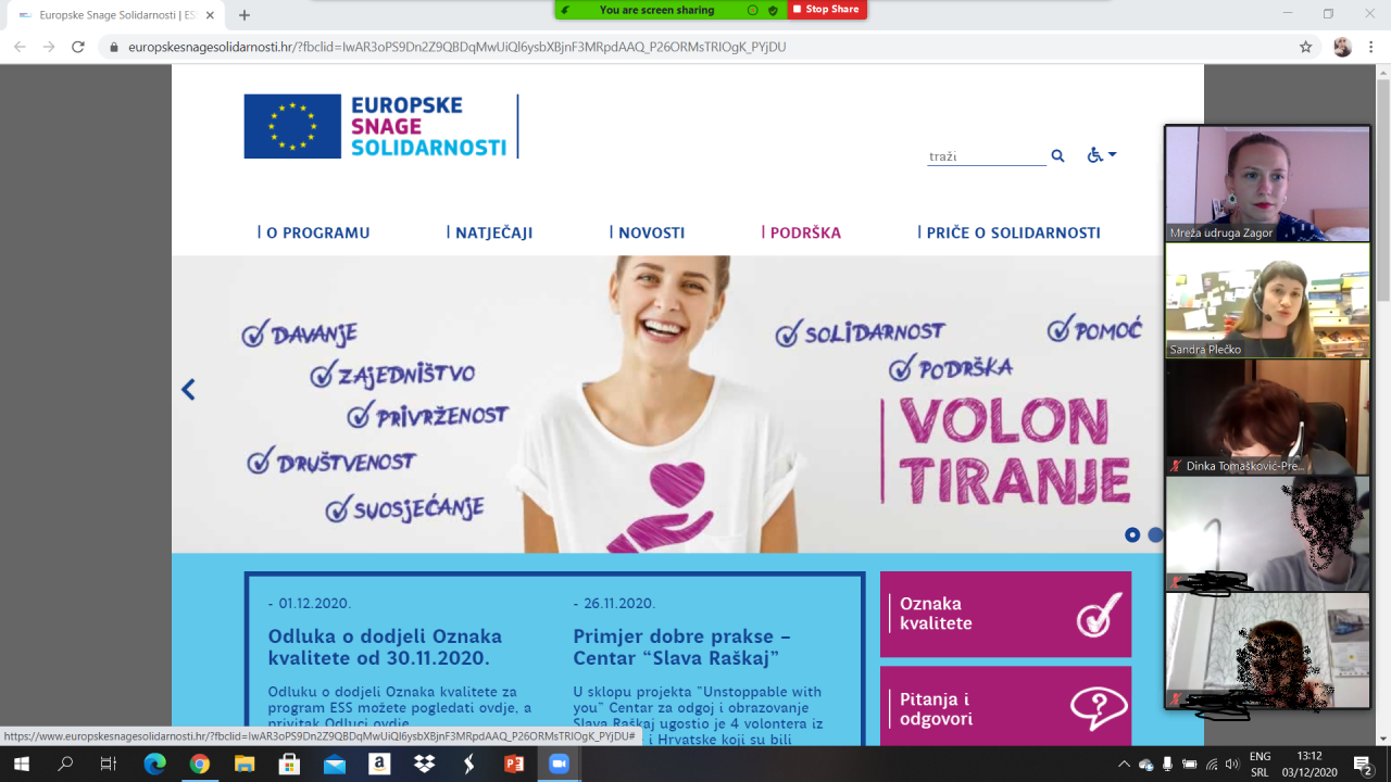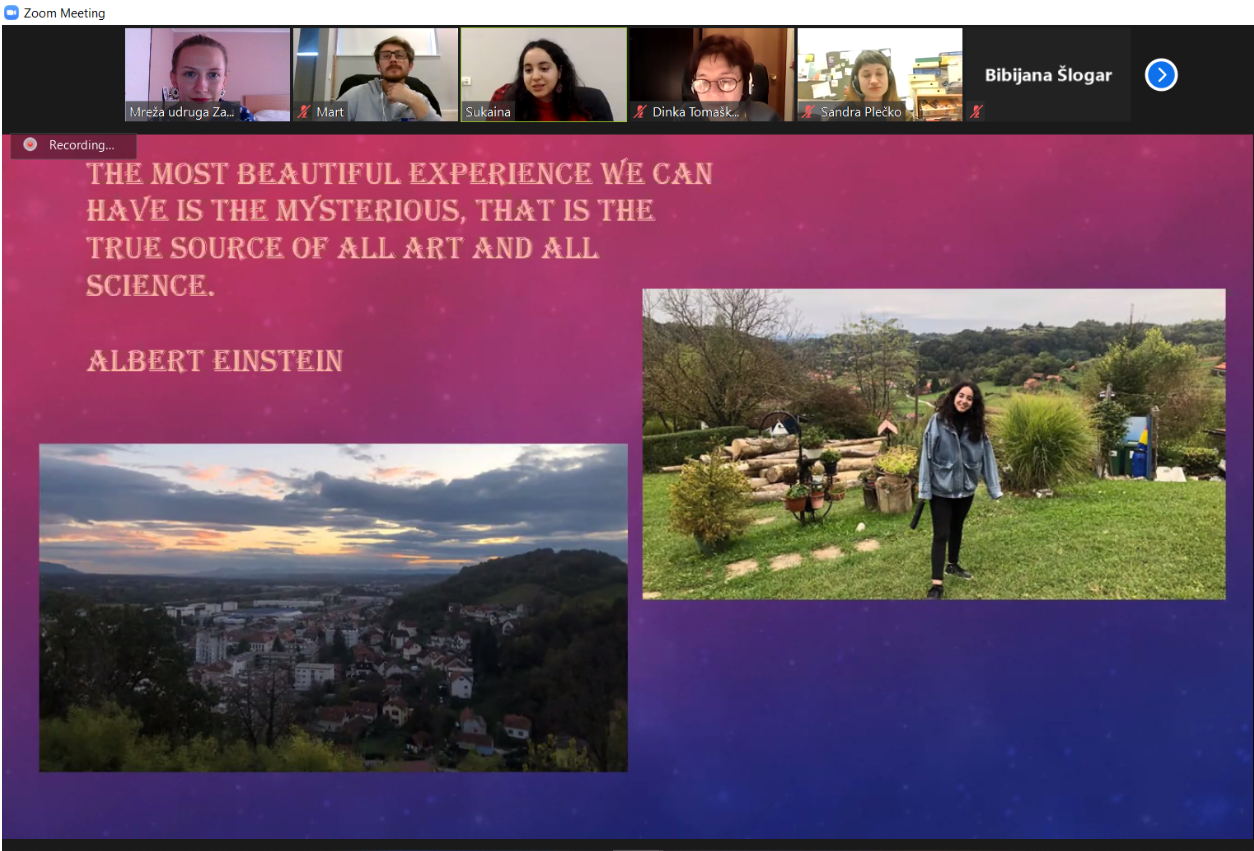 Danas, 3. prosinca 2020. održali smo online interkulturalno predavanje za učenike/ce Gimnazije Antuna Gustava Matoša, Zabok. Na predavanju su učenici/ce imali prilke čuti više o Europskim snagama solidarnosti, koje mogućnosti su im dostupne te gdje sve mogu pronaći potrebne informacije. Također, učenicima/cama su se predstavili i naši međunarodni volonteri Mart (Estonija) i Sukaina (Španjolska) koji su im ispirčali zašto su se odlučili na volontiranje u stranoj zemlji, kako su se snašli kad su došli, kako izgleda njihov radni dan, kako izgleda život s cimerom/icom i sl. Na taj način učenici/ce su se informirali o mogućnostima mobilnosti te su imali priliku iz prve ruke pitati volontere sve što ih zanima.