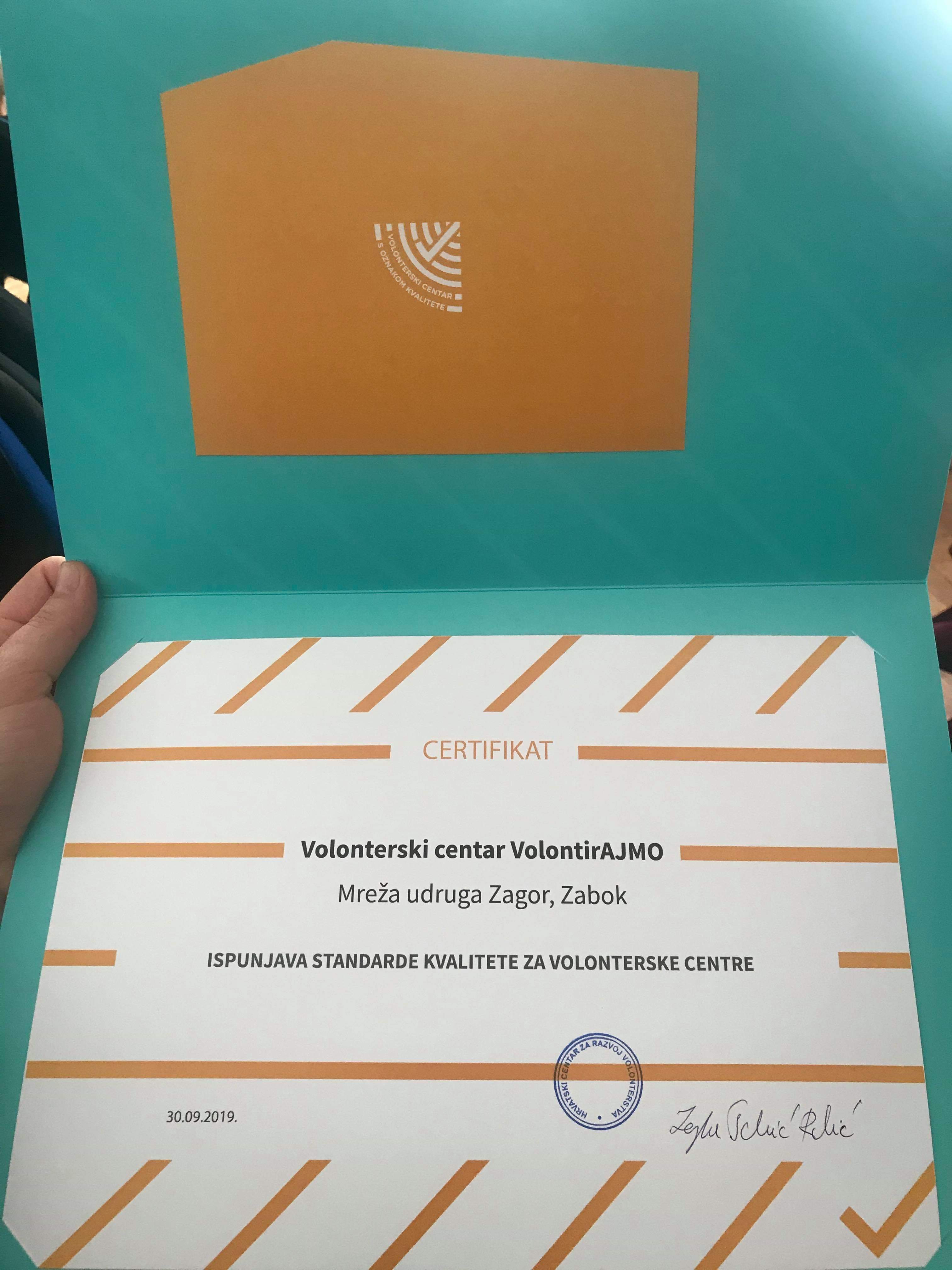 U Europskom domu održana je svečana dodjela oznaka kvalitete za lokalne volonterske centre. Volonterski centar VolontirAJMO koji djeluje pri Mreži udruga Zagor jedan je od 7 volonterskih centara iz Hrvatske koji je dobio oznaku kvalitete. Na svečanosti su oznaku kvalitete preuzeli Nikolina Bertol, Bojan Bjelja i Ivana Radanović iz Mreže udruga Zagor a potporu su na svečanosti dale i Martina Gregurović Šanjug ispred Krapinsko-zagorske županije i Martina Šarić ispred Grada Zaboka, koji su Volonterskom centru važni partneri u području razvoja volonterstva.