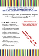 OTVORENE PRIJAVE ZA CERTIFICIRANI PROGRAM OSNOVNOG 3D MODELIRANJA I KORIŠTENJA 3D PRINTERA