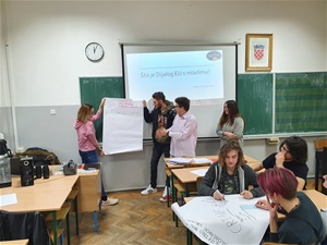 27.2.2020. //Jučer, 26. 2. 2020. održana je radionica o Dijalogu EU s mladima u Srednjoj školi za umjetnost, dizajn, grafiku i odjeću Zabok, a održala ju je Nezavisna udruga mladih te Mreža udruga Zagor.