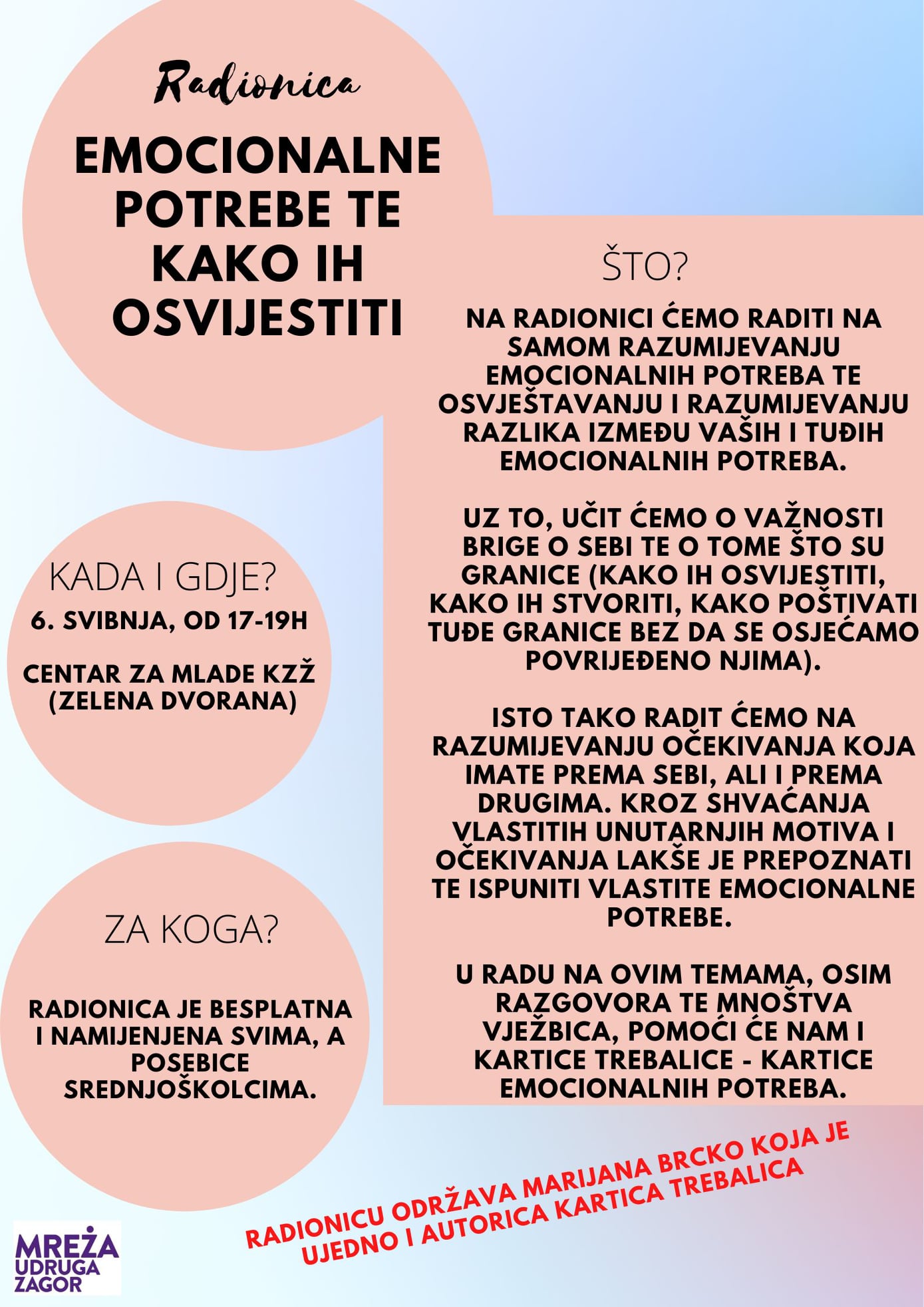 Poziv na radionicu "Emocionalne potrebe te kako ih osvijestiti"